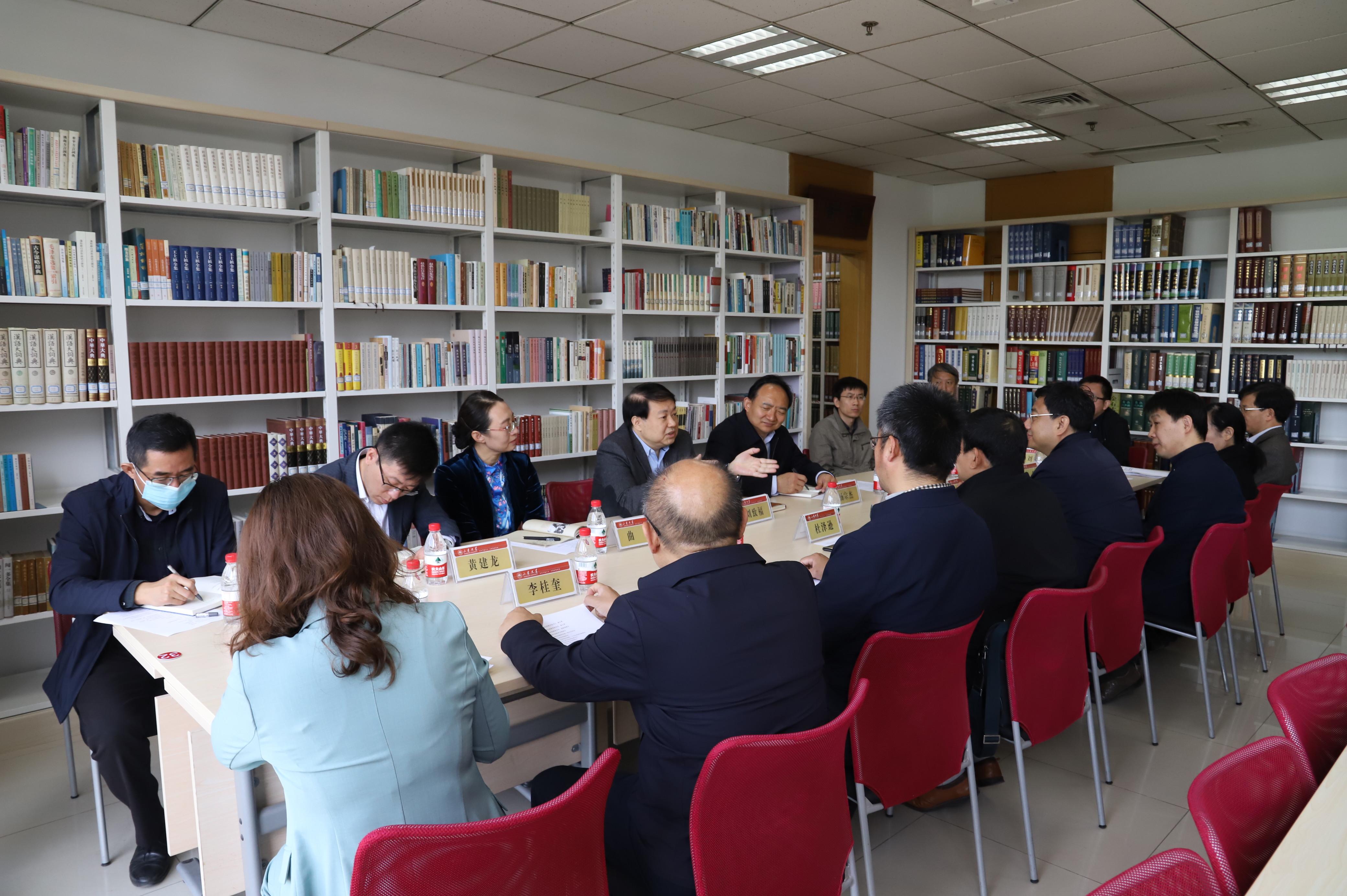 4月28日上午,山东省社科联党组书记、副主席刘致福带队来248cc永利集团调研,参观了院文化墙和图书资料室,并召开小型座谈会。山东大学校长助理、人文社科研究院院长邢占军陪同调研,院党委书记张帅、院长杜泽逊参加调研并汇报了文学院建设成果。