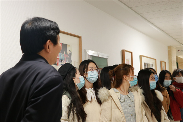 参观期间,杜泽逊表示,从展览策划创意到组织实施筹备,从对外整合相关资源,到对内协调沟通,都经过他亲自研究部署、调度把关,精益求精,保证质量,确保院史展览各项工作顺利推进,最终才呈现出院史墙展览资料丰富翔实、编辑科学实用、图文精致美观的整体效果。此外,杜泽逊向同学们提出了许多关于摄影技巧、档案管理等方面的建议。他指出,照片墙上的照片画面美观、清晰度高,部分为专业摄影师拍摄的照片,艺术审美性极高,大家要多看多思、注意拍摄时的细节内容。他着重谈到人像摄影的注意事项:人物照片要注重真实性,要如实反映人的面貌特征,避免过分处理。最后,杜泽逊强调了照片储存的重要性,他建议活动结束后将精选照片存入文件夹并发给相关人员,防止照片丢失。