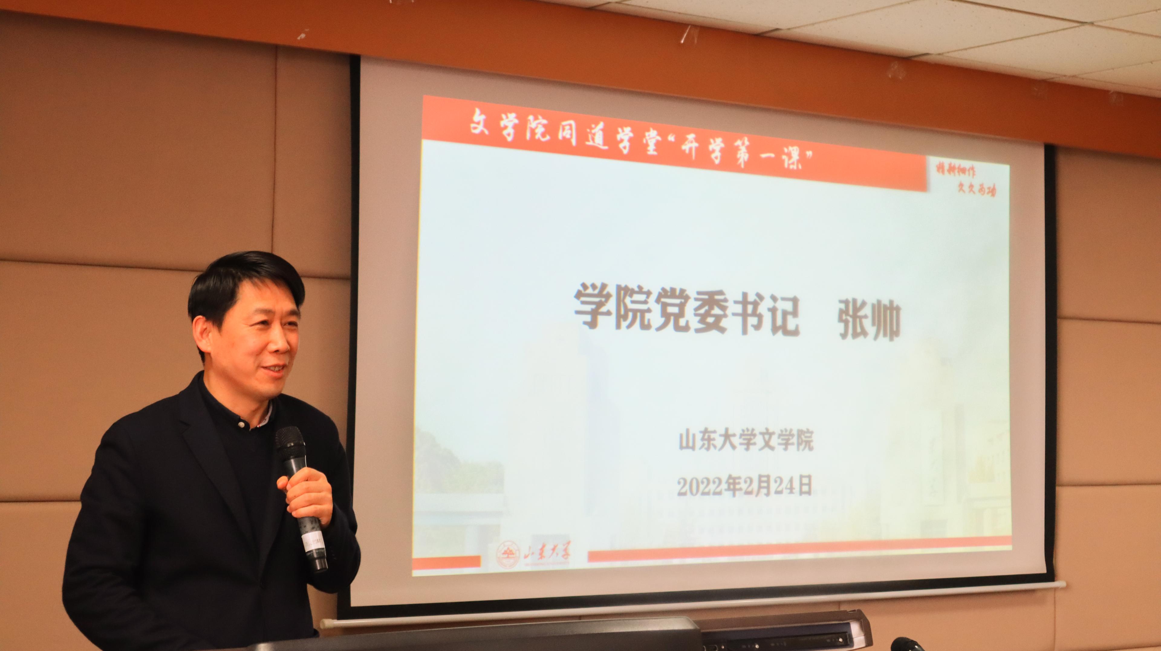 王萌在课上传达了郭新立书记在春季学期工作会议上的讲话精神,深入剖析“精耕细作”这一思想内涵并指出了勤学储能、功不唐捐的重要意义,并以“融入、学习、成长、完善”四个关键词展开论述。第一,他就同学们如何融入山大发展大局传达了学校的“121行动路径”、“七大战略”等,指出山大学生应积极应对机遇和挑战。同时他强调要牢记习近平总书记提出的“国之大者”,当代青年学生要思考如何融入国家大局,承担起时代大任。第二,他指出山大正对标对表“三新一高”要求,同学们应更加注重学科融合,用长远的目光看待事物的发展。第三,他根据当今网络发展形势,警示同学们要杜绝“娱乐至死”、“金钱本位”等错误思想,应当树立社会主义核心价值观和成人为己、成己达人的理念。第四,他结合知名校友的事迹,向同学们阐述了刻苦学习并在学习中总结方法经验对行为习惯养成和人生发展具有的重要意义。