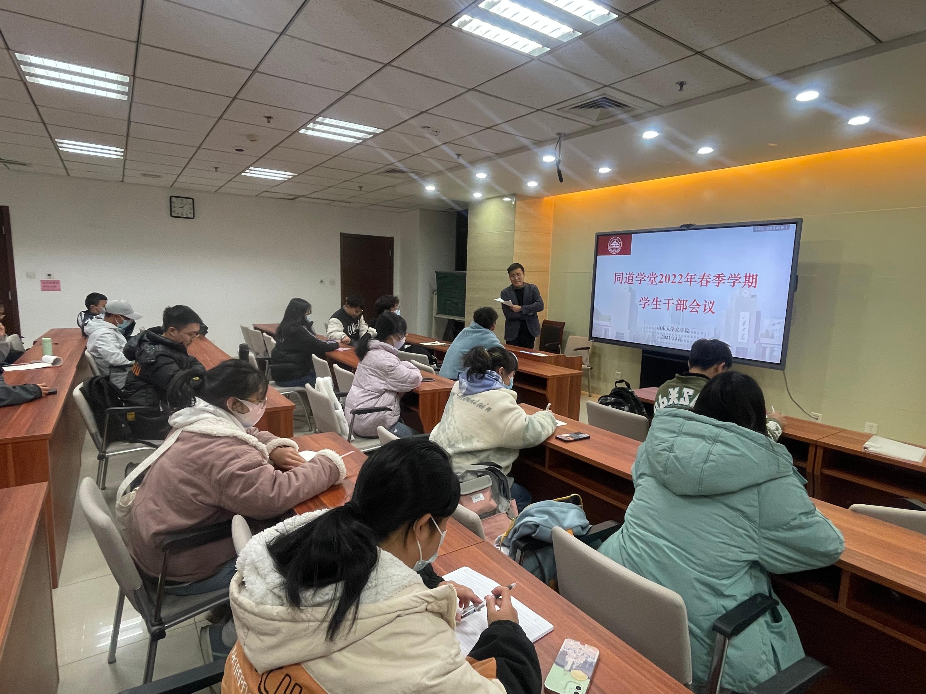 据悉,为做好“开学第一课”,精进、精细、精准推进新学期各项工作。2月21日晚,同道学堂在知新楼A606会议室召开了新学期学生干部工作会议。张远与学生干部一起对秋季学期各项工作、寒假期间“五育并举·石榴花开”系列专题活动、寒假社会实践等进行了总结和讨论,并按照“致广大而尽精微、事事精耕细作”的要求对新学期的工作进行了研讨和交流。
