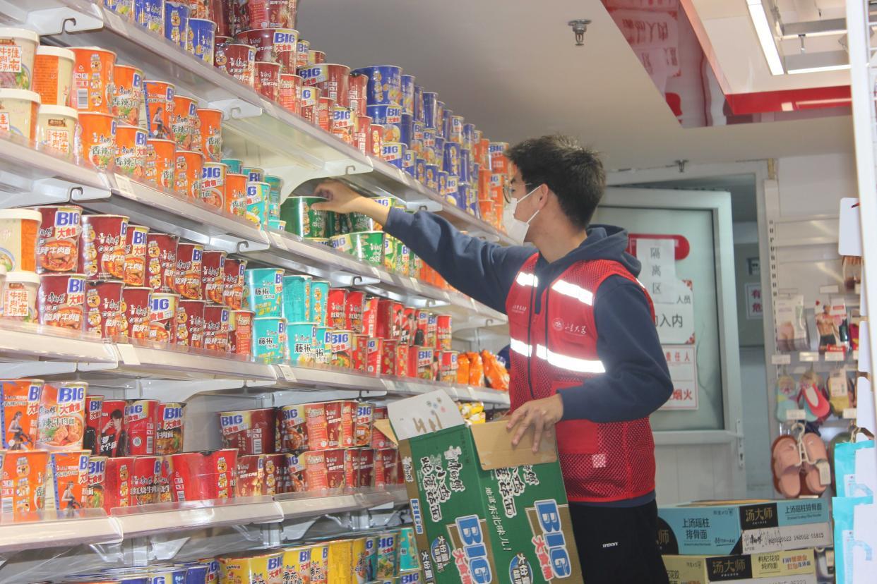 在超市的每个区域,都能看到文院志愿者们勤恳工作的背影。他们穿行于货架之间,测温枪“滴滴”的声响和笔尖掠过纸张的“沙沙”声,是志愿精神最有力的证明。志愿者们高涨的工作热情和良好的精神风貌,不仅得到了超市员工和师生的认可,也为在校师生的生活保障和学校的疫情防控工作奉贡献了一份文院学子的力量。