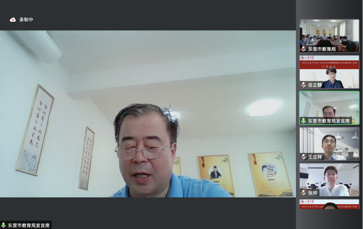 随后,董永新介绍了东营市教育局的语言文字工作进展,他表示东营市相关部门将认真落实省语委有关要求,精心组织、严格管理,确保培训任务圆满完成。苟卓林重点强调了培训教学管理规则和注意事项,希望学员们能服从项目安排、严守培训纪律,全身心地投入到培训中。东营市四区二县分管领导分别介绍了其所在区县幼儿园教师和保育员普通话水平测试情况和工作开展情况。