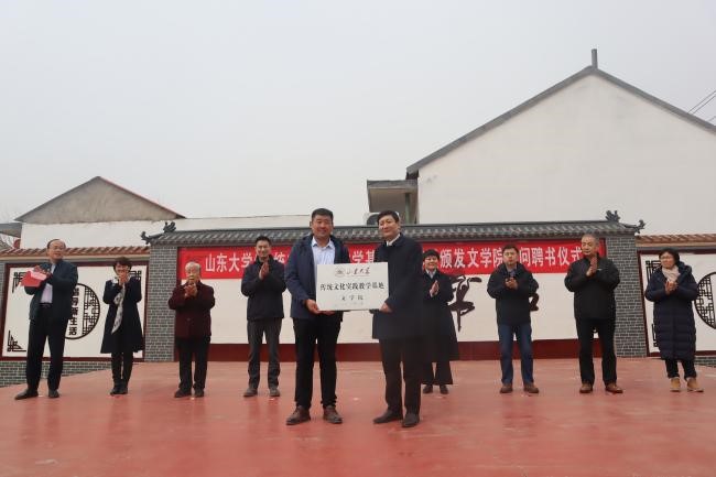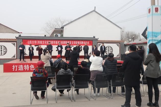 3月17日,“山东大学传统文化实践教学基地”授牌暨248cc永利集团语言文化顾问聘任仪式在安丘市新安街道孙十里民俗文化示范村举行。248cc永利集团院长杜泽逊,本科生院副院长、248cc永利集团副院长马兵,副院长樊庆彦,248cc永利集团教授张树铮,教授岳立静,副教授张燕芬以及方言学研究生陈秀青、周明润、项荟霖、袁红前往安丘参加仪式。安丘市委常委、市政府副市长王晓丽,新安街道党工委书记周希全,安丘市文旅局局长李建利,安丘市委原常委、宣传部部长张维荣,原安丘市计生局副局长王宝林,新安街道孙十里村党支部书记孙大鹏,民俗文化学者朱瑞祥出席仪式。周希全书记主持仪式。