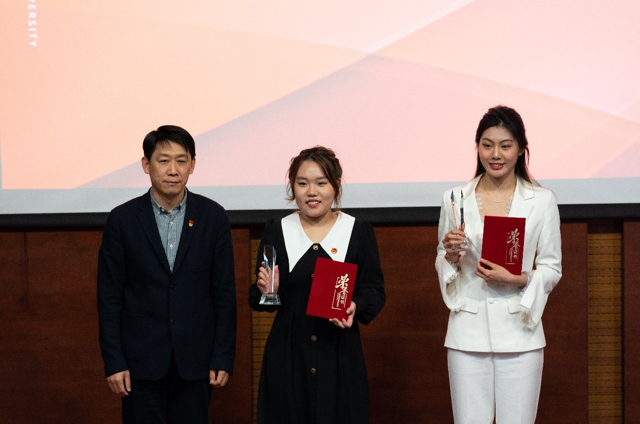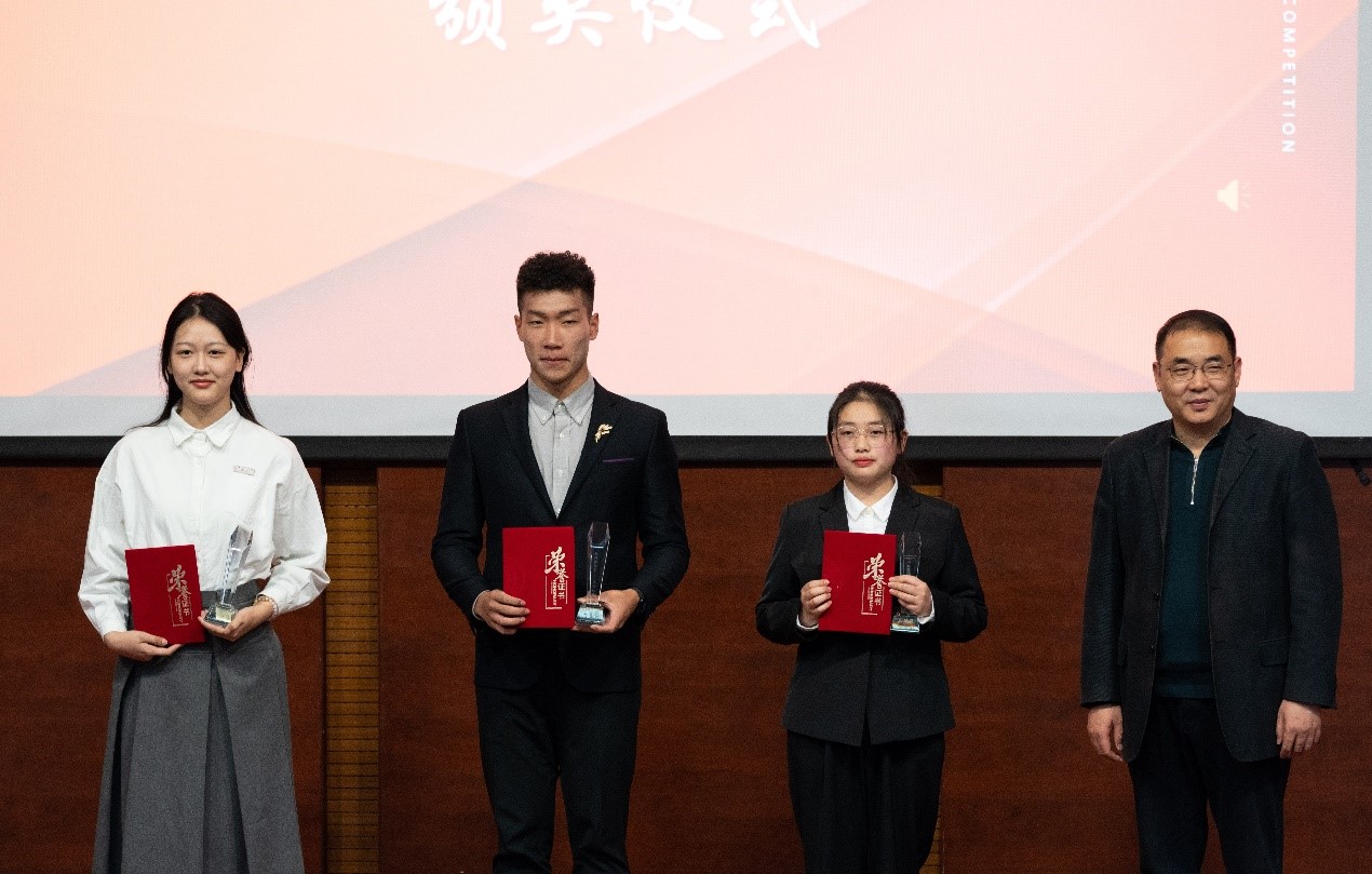 最终,经嘉宾评委和学生评委的现场评分,来自山东大学的郑又天摘得桂冠;来自山东财经大学燕山学院靳均竹,山东大学的张格堃获得二等奖;来自济南大学的秦子晴、来自山东建筑大学的吕青韵和来自山东大学的肖玉辉获得三等奖;13名选手获得优秀奖。颁奖嘉宾为获奖选手依次颁奖并合影留念。