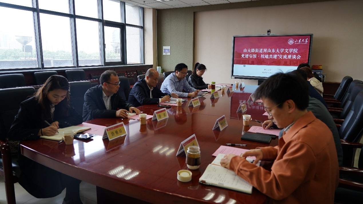 会议伊始,张贯超与王萌就各单位的基本情况及党建特色工作进行介绍。双方一致认为开展校地合作有效结合了学校人才资源与社会服务资源,并表示将持续深化校地合作,在现有基础上深入推进基础工作,实现强强联手、合作共赢。冀慎军表示,山大路街道作为山东大学全方位的服务圈,将推进资源整合,做好人才保障服务,为创业人员与学校内部联系提供公共平台和定期交流的场所,发挥服务型街道的应尽义务。王萌表示,学院一向重视对于学生实习、实践技能的培养,引导学生成长为社会需要的新时代中文学科人才。希望能够在属地单位的支持配合下,开放更多实习实践专业岗位,同学们能够真正地经风雨、见世面、长才干,获得个人长足发展。