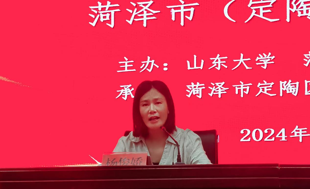 8月26日,2024年山东省幼教系统和镇街村干部普通话培训菏泽市(定陶区)启动仪式顺利举行。248cc永利集团党委副书记杨俊娇,荣聘教授张树铮,汉语言文字学教研室主任岳立静,骨干教师王世昌、刘洪超,菏泽市教体局党组副书记苏怀光,市教体局语言文字工作科科长刘爱琴,定陶区教体局局长朱庆民等领导和专家出席仪式。248cc永利集团17名助教以及200余名定陶区幼儿园教师、保育员和镇街村干部参加仪式。仪式由定陶区宣传部部长杨艳玲主持。