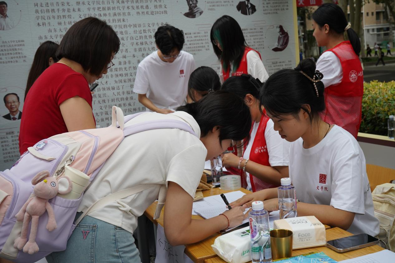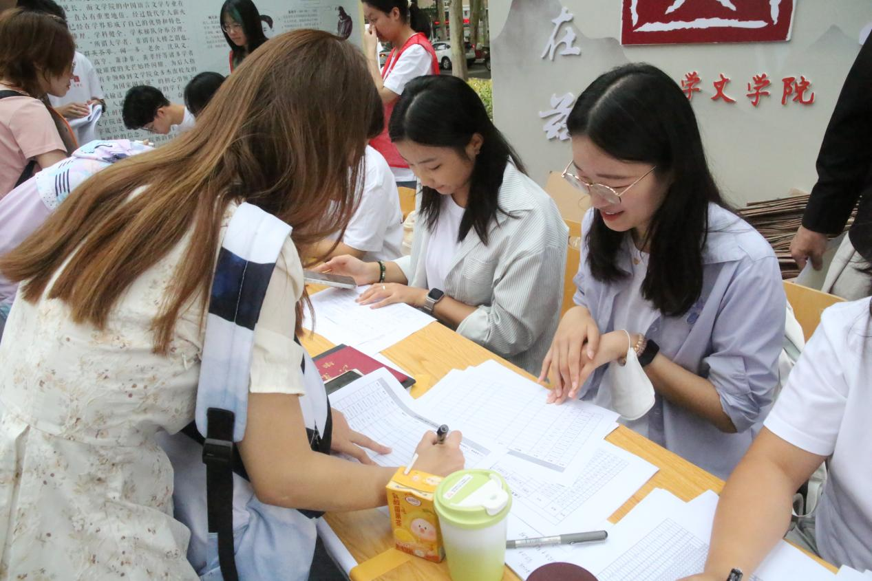 迎新过程中涌现的温馨瞬间,生动诠释着248cc永利集团对学生的关心与关怀。本科新生郭珂嘉在报到当天恰逢生日,辅导员孙铭孺代表学院为她送上鲜花和学院文创玩偶,现场迎新工作人员齐声唱响生日歌,传递浓浓的生日祝福。研究生新生辅导员宋海涛则亲自带领中国古代文学专业新生徐辰杰完成报到流程,并送上新生大礼包。两位同学对学院和老师表达了感谢之情,同时还表示要在今后的大学生活中勤奋努力,争做优秀文院人。