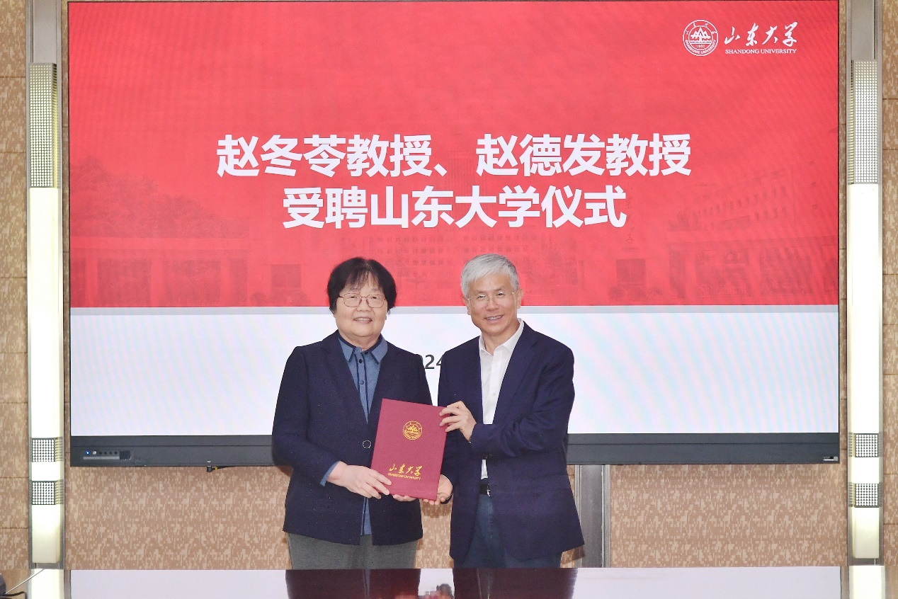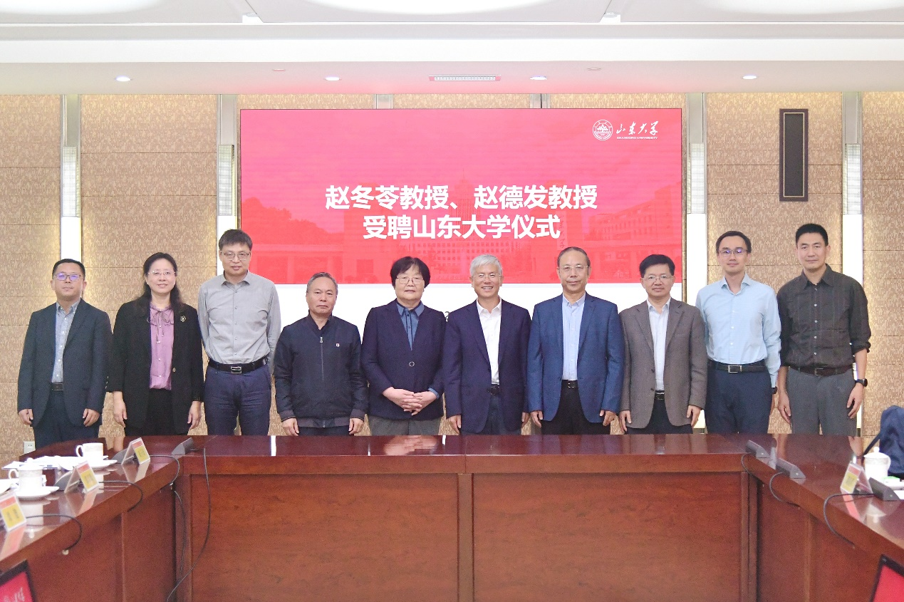 10月17日,赵冬苓、赵德发受聘山东大学讲席教授、特聘教授仪式在中心校区明德楼一层会议室举行。山东大学校长李术才出席仪式并为赵冬苓教授、赵德发教授颁发聘书。聘任仪式由人事部部长、人才工作办公室主任刘健主持。