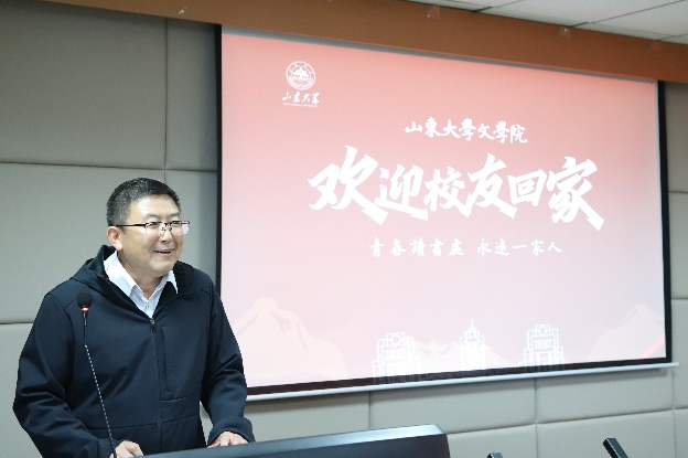 会议伊始,郭春晓代表学院首先对到场的全体校友表示热烈欢迎与热情问候。她表示,1980级校友在各领域都做出了突出的贡献,学院为此感到骄傲和自豪。她向校友们详细介绍了学院近年来的发展情况与学科建设成果,并对校友们长期对学院的关心支持表示衷心感谢。最后,郭春晓希望校友们持续保持联系、不断增进情谊,互融互促、精诚团结,共建、共享美好山大、美好文院。