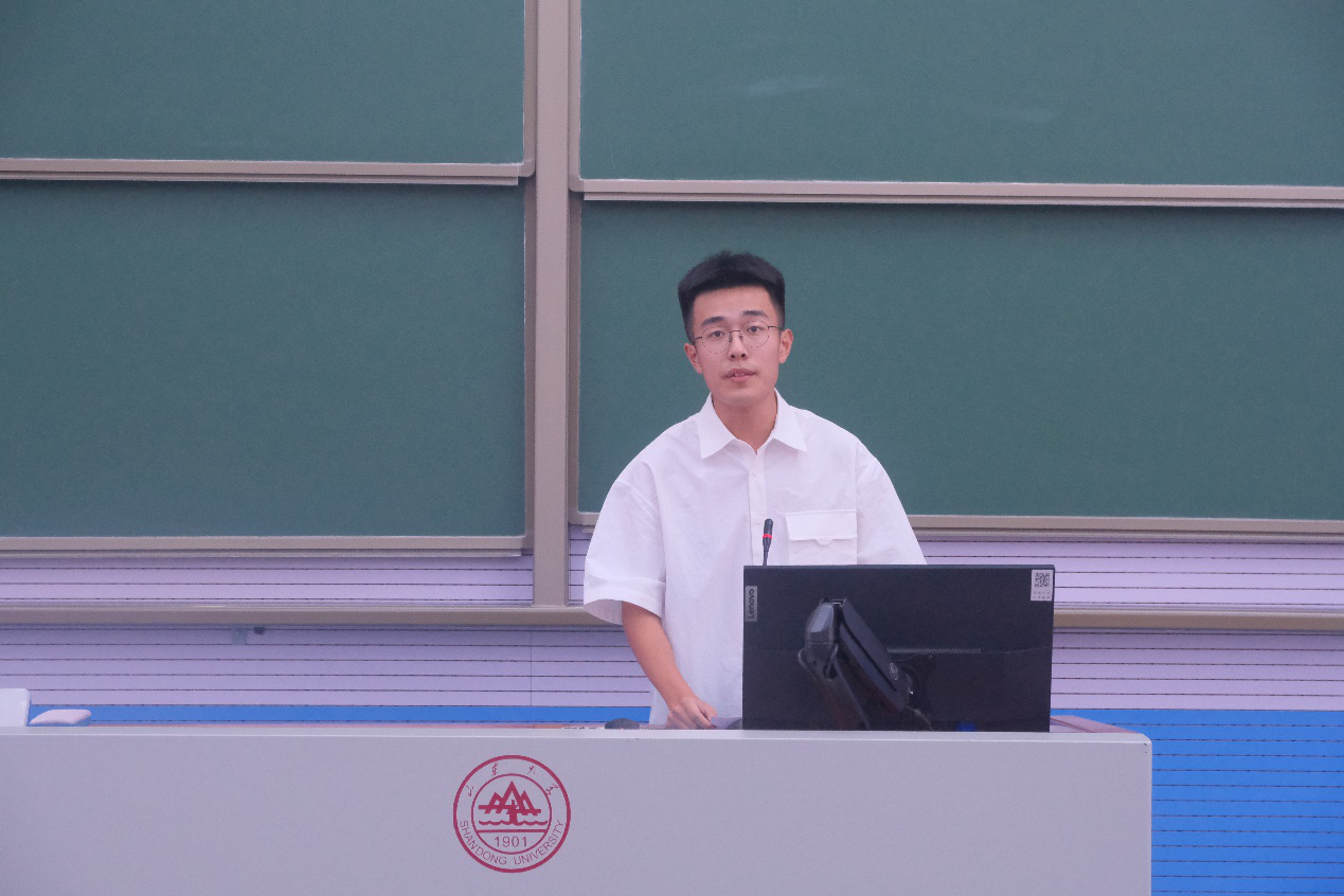 2025级中国现当代文学专业硕士研究生窦宇作为新生代表发言。他通过追忆“文史见长”“冯陆高萧”等山大美誉来源表达了对文学的赤诚热爱和对学术的深切敬畏,并以“珍重读书身,莫白了青青双鬓”与同学共勉,祝愿新生都能在文学院的发展篇章中书写属于自己的“注脚”,在交流互鉴中学有所成,不负韶华。