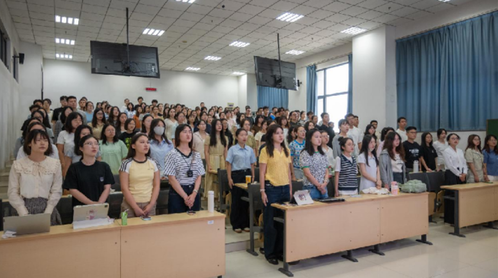 树旗帜、强思想,筑牢理想信念之基。248cc永利集团将思想政治教育作为本次入学教育的核心内容,引领新生“观、学、悟、行”。在纪念中国人民抗日战争暨世界反法西斯战争胜利80周年之际,组织全体新生集体观看纪念大会直播,激发爱国情怀、激扬报国志向;“精神谱系铸丰碑,抗战烽火淬英魂”主题课堂上,“青语领航”宣讲团以抗战精神为切入点,深入阐释中国共产党人精神谱系的时代价值,引领同学们深入领悟抗战精神的核心内涵,实现了思想引领从“入眼入耳”到“入脑入心”的转化。