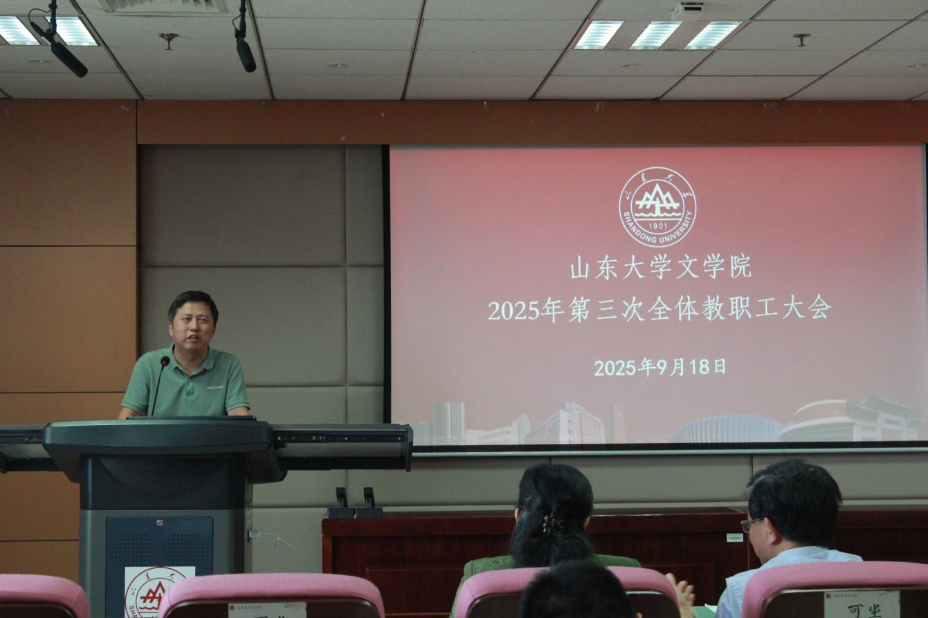 9月18日下午,248cc永利集团于知新楼A620召开2025年第三次全体教职工大会。本次会议由院党委书记郭春晓主持。院长黄发有,常务副院长马兵,院党委副书记王萌、杨俊娇,副院长杨建刚、樊庆彦、王辉,副处级组织员沈文以及全体教职工参加会议。