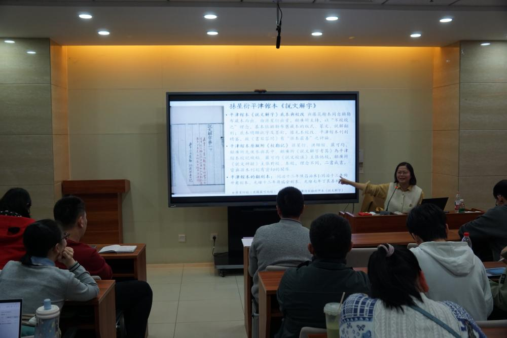 最后,董老师总结,《说文》在历代流传过程中版本发生了复杂变化,使用时要注意所据版本的刊刻底本、校改情况。通行的刊本是一个时代中最易获见的版本,而各个刊本的局限也会影响一代学人。在《说文》版本流传史上,清代重要的《说文》刊本,往往与小学家、藏书家、校勘家的相互交流有著非常密切的关系,形成了不同的版本源流。每一个刊本背后,事实上也反映着不同的校勘理念和校勘成果。