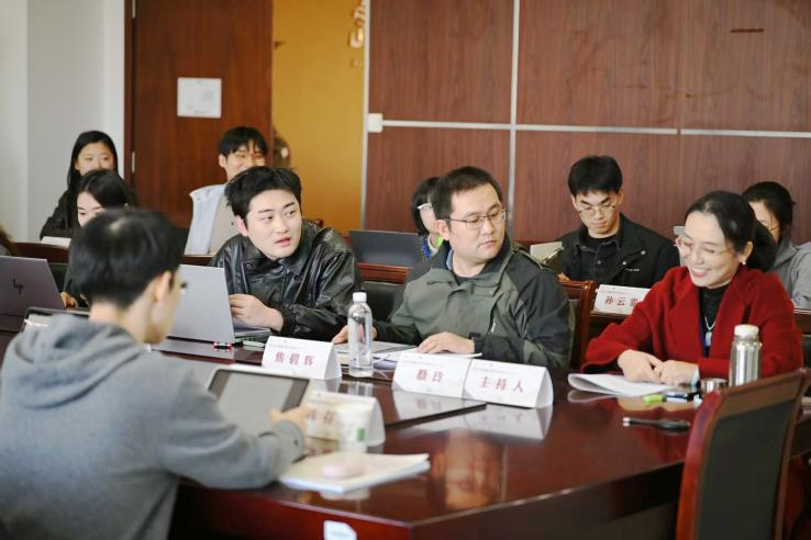第一分组上半场刘庆洋、汤越、暴佩聪、石锦瑜、李美如、邹德淑、刘京晶、陈光浩、吾吉九位同学依次发言,内容围绕李泽厚情本体、马伯乐道教研究、宗白华自然美思想、“表征”“神思”“应物象形”等核心概念、明代戏曲刻本插图、清初书论和藏族五妙欲的生活美学展开。下半场杨硕鹏、孙元哲、杨暄婷、马迎春、舒沛、刘智浪、刘鑫岩、田丽媛八位同学围绕中国及东亚的现当代美学与文艺展开讨论,聚焦朱光潜、宗白华、韩炳哲、新大众文艺、意象叙事和中国现代美学的审美功利性问题等多元问题。评议环节,中国传媒大学张晶教授肯定了同学们的选题多元、内容丰富,鼓励大家勇于攻坚学术难题、敢于寻找真问题、新问题;山东大学陈硕副教授根据大家的研究方向推荐参考书目并分析论文提升策略;山东大学李飞副教授点评同学们的选题、研究方法与写作细节,为论文后续的修改完善提供明确指引。