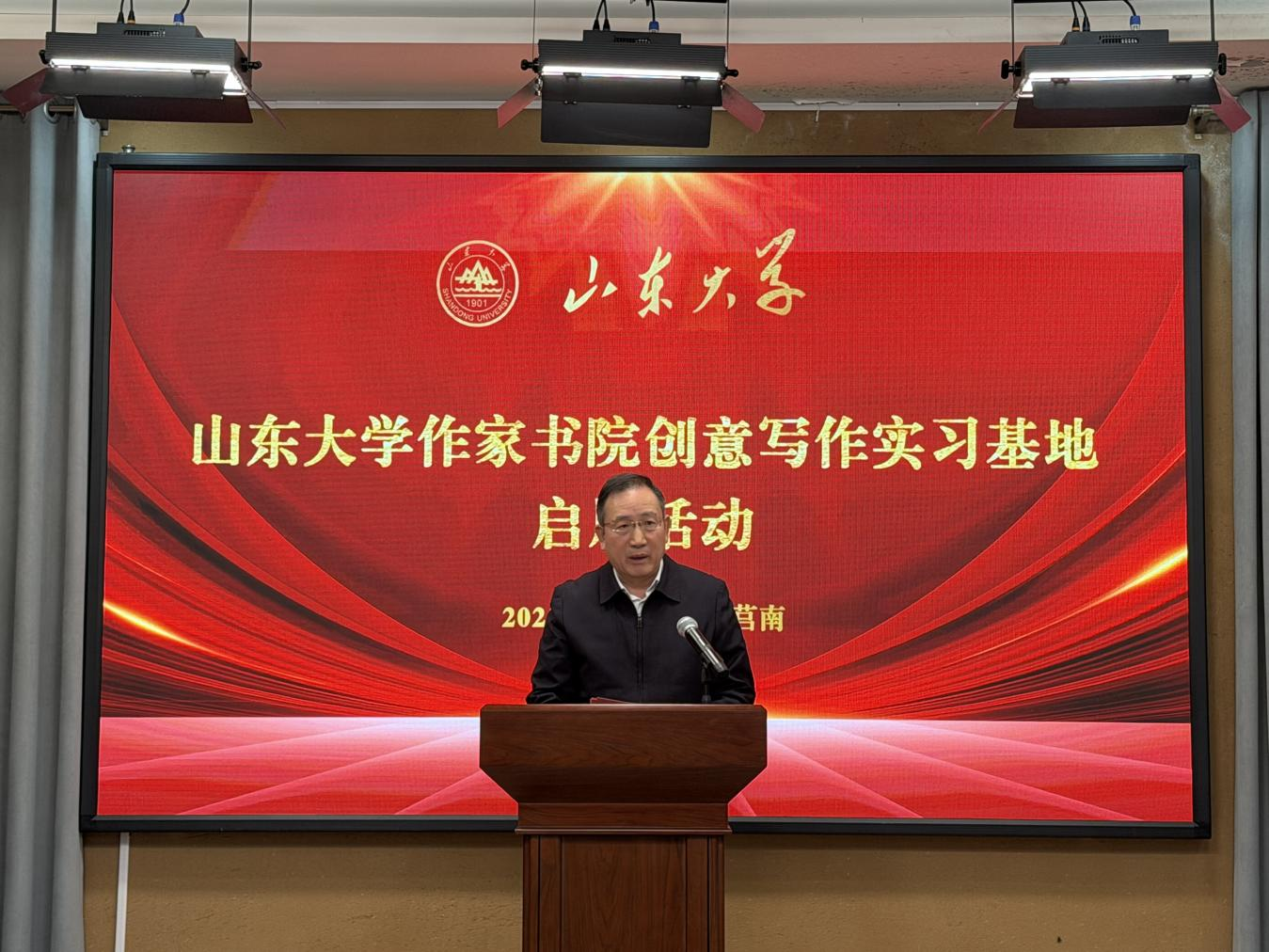 随后,临沂市委宣传部分管日常工作的副部长、市文明办主任周晓东在致辞中指出,临沂作为历史悠久、文化灿烂的全国著名革命老区,高乡书院以文为媒、以书传情,为文化交流搭建了良好平台。山东大学在此设立作家书院创意写作实习基地,精准对接地方文化资源与高校学术资源,必将为文艺创作注入强劲动力。