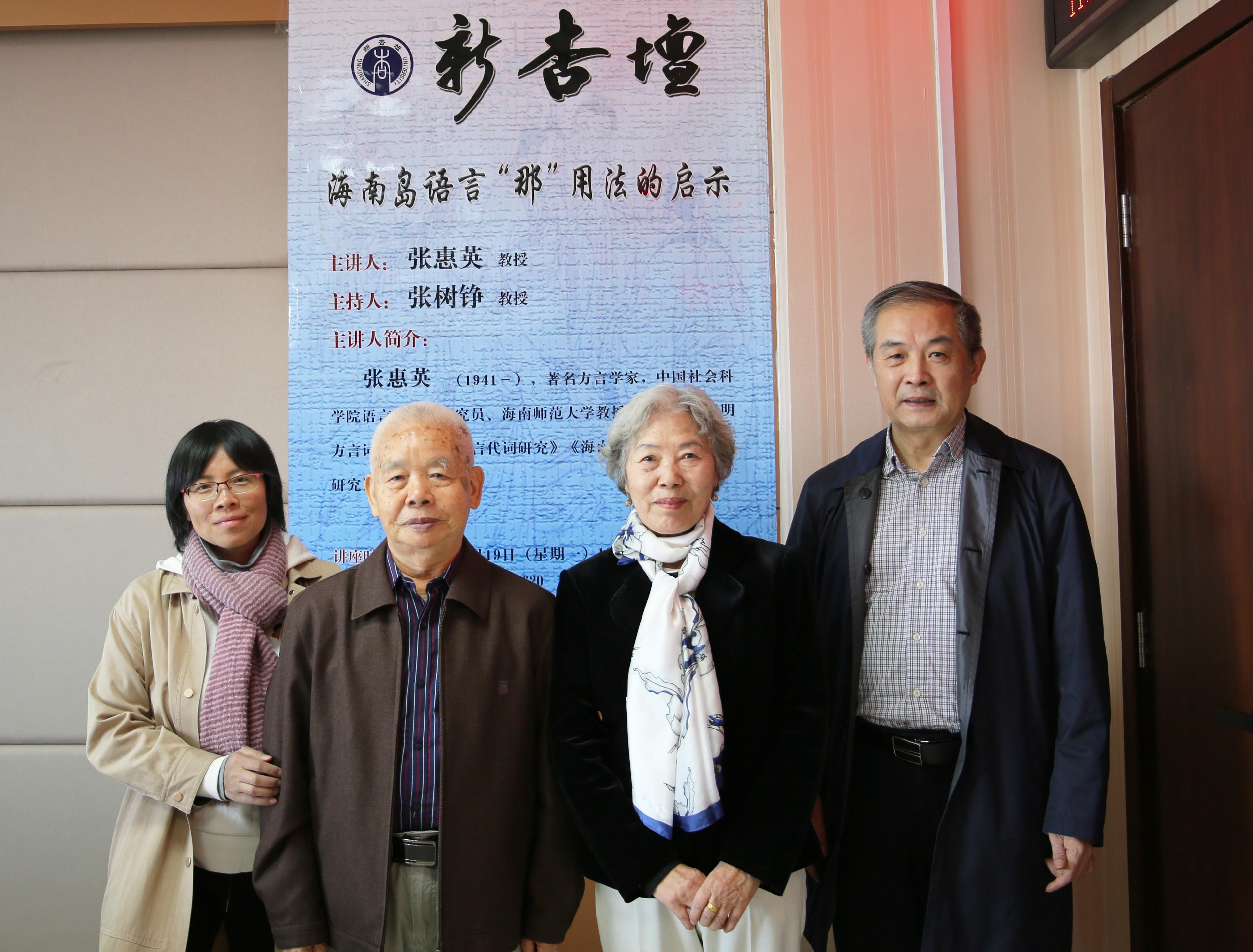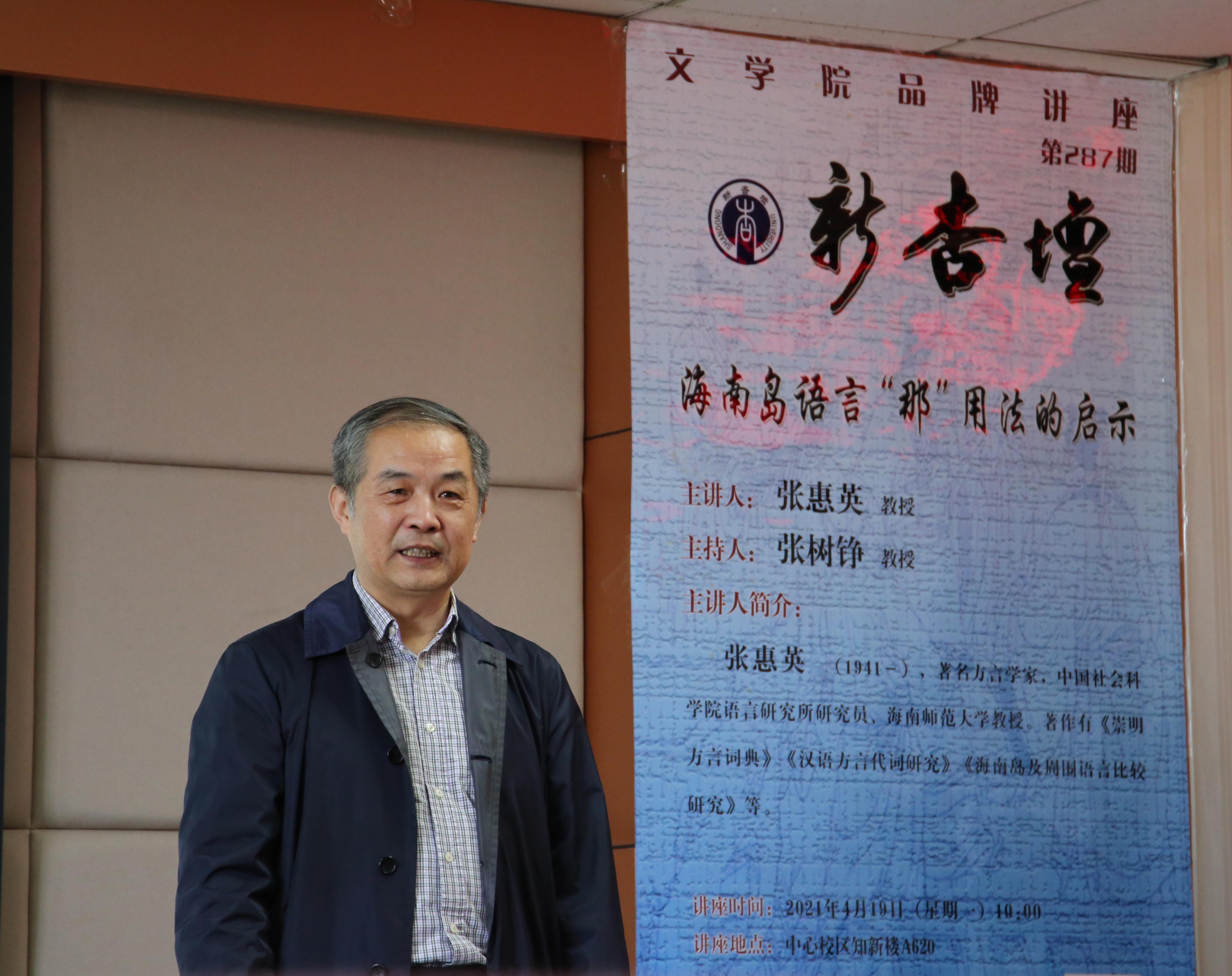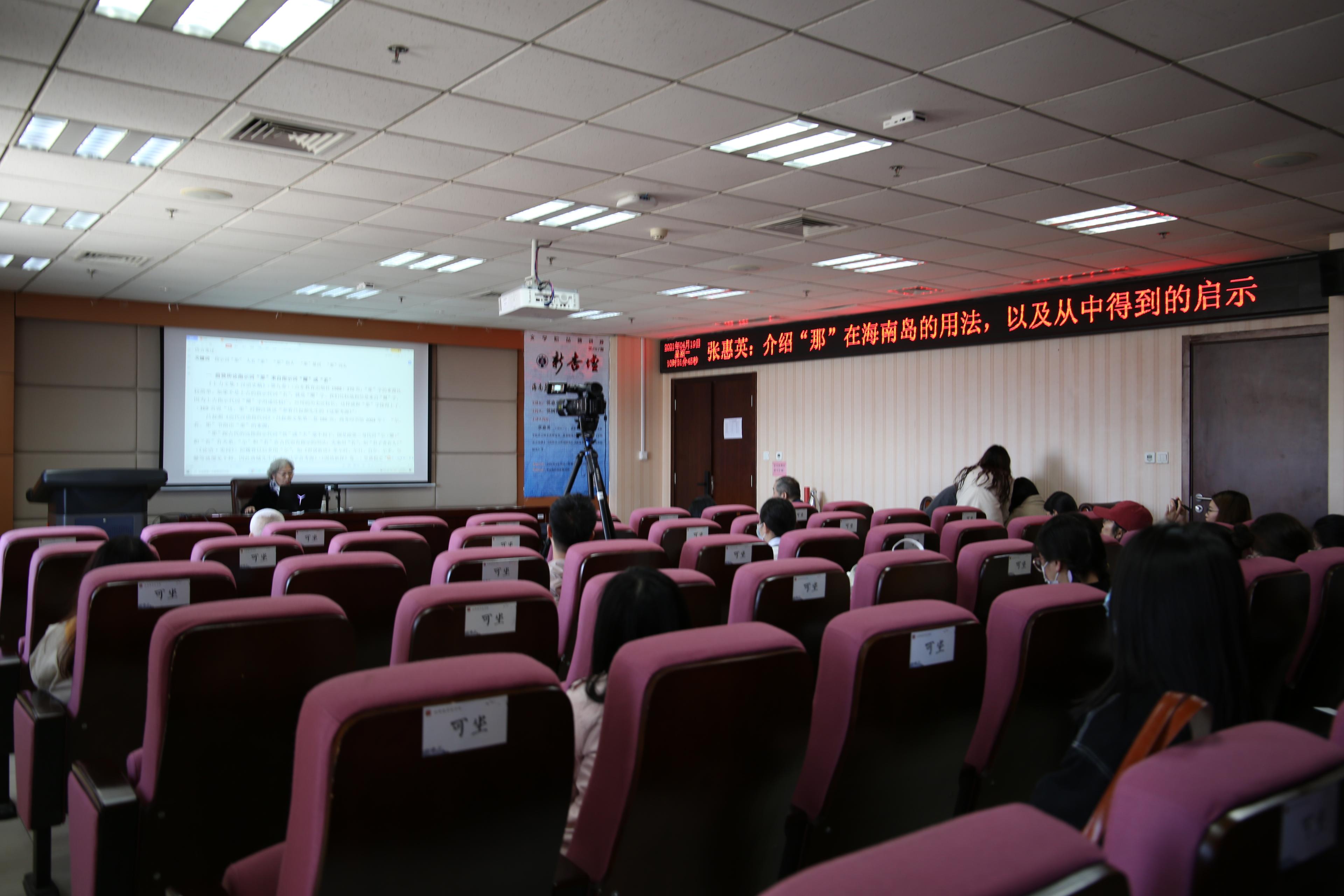 4月19日10时,著名方言学家、海南师范大学教授张惠英做客248cc永利集团“新杏坛”,在知新楼A620报告厅作题为“海南岛语言‘那’用法的启示”的讲座。讲座由248cc永利集团教授张树铮主持,副教授张燕芬以及文学院众多学生共同聆听了本次讲座。
