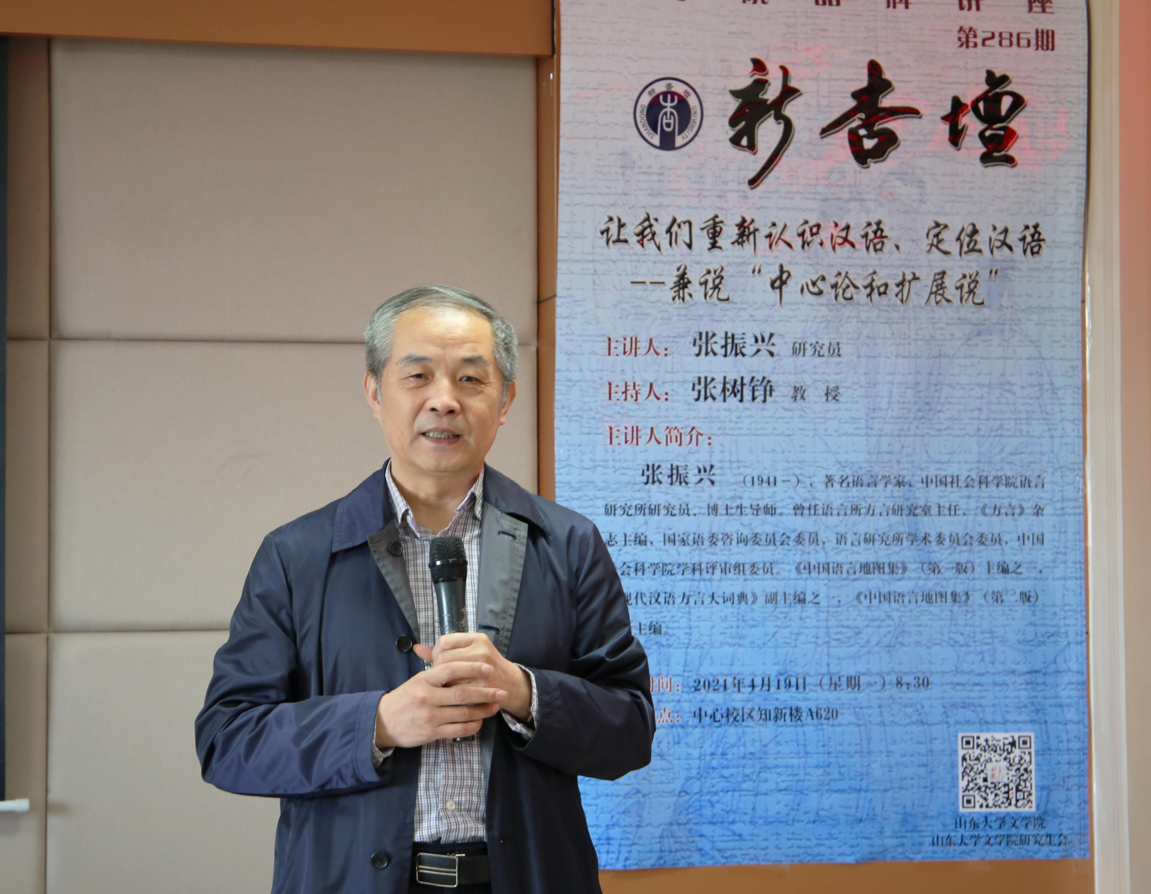 讲座伊始,张树铮简要介绍张振兴先生的学术成就,高度称赞了张先生在汉语方言学领域的成就和贡献,鼓励同学们结合本场讲座与周末刚刚结束的年会总结,从张先生的学术观点中获得启迪。