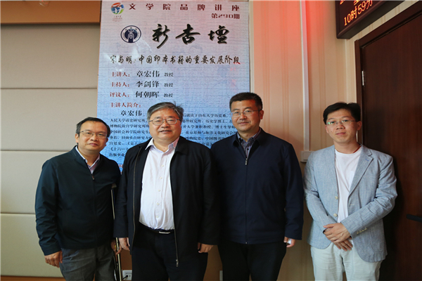 5月17日上午,故宫博物院故宫学研究所所长、南开大学兼职教授、博士生导师章宏伟教授做客“新杏坛”,在知新楼A620室作题为“宋与明:中国印本书籍的重要发展阶段”的学术讲座。讲座由文学院李剑锋教授主持,文史哲研究院何朝晖教授评议,吸引院内外众多师生共同聆听。
