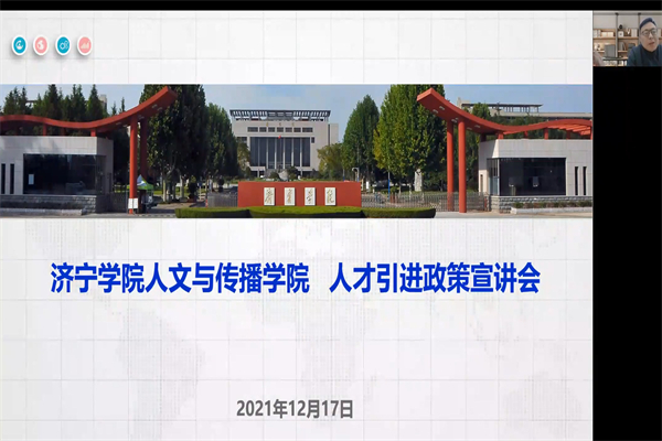 12月17日晚,248cc永利集团举办“济宁纳百川,文苑多才贤”济宁学院人才引进政策交流会,会议由248cc永利集团研究生会组织举办,济宁学院人文与传播学院院长王永超教授主讲,副院长贾英侠教授提供技术指导,248cc永利集团部分研究生通过腾讯会议线上参会。
