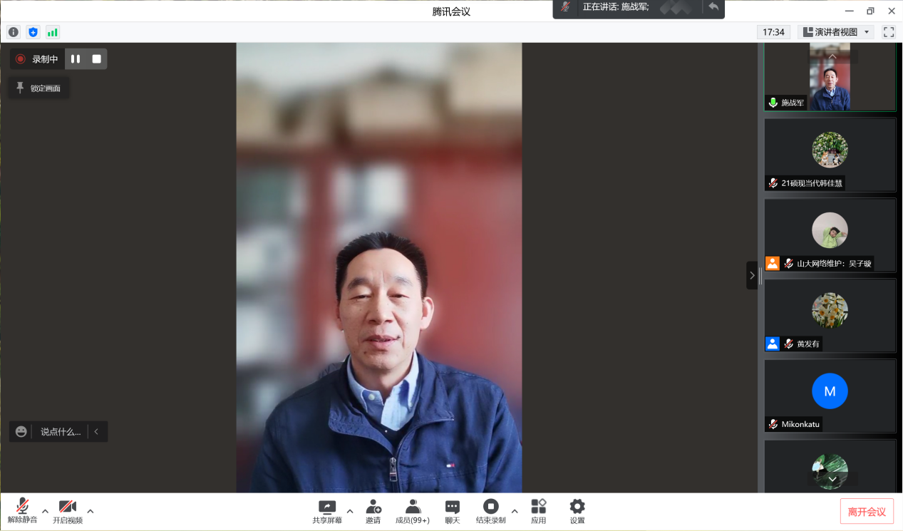 最后,黄发有总结,施战军围绕茅盾《农村三部曲》发散开来,完成了对于中国乡村小说的一次系统性梳理,并指出,如何利用已有的知识储备构建自己的知识体系是当下广大学生应该思考的问题。讲座的内容翔实,视野开阔,为我们学习和研究提供了有效启发。至此,本期讲座圆满结束。