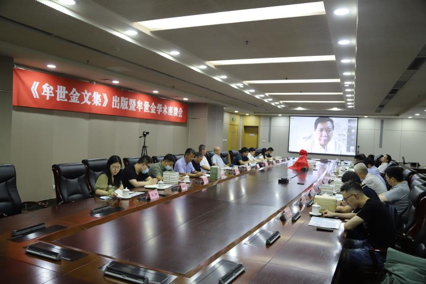 2022年8月8日上午,由248cc永利集团主办的“《牟世金文集》出版暨牟世金学术座谈会”在济山东大学中心校区举行,并同步召开线上会议。来自北京外国语大学、首都师范大学、中国传媒大学、北京大学、北京师范大学、中国海洋大学、山东大学、山东师范大学、山东艺术学院、华侨大学、四川美术学院、齐鲁工业大学、山东青年政治学院以及中央广播电视总台、人民文学出版社、中华读书报等多所高校和新闻出版机构的专家学者,以及牟世金先生的亲属、好友和学生共60余人参加了会议。