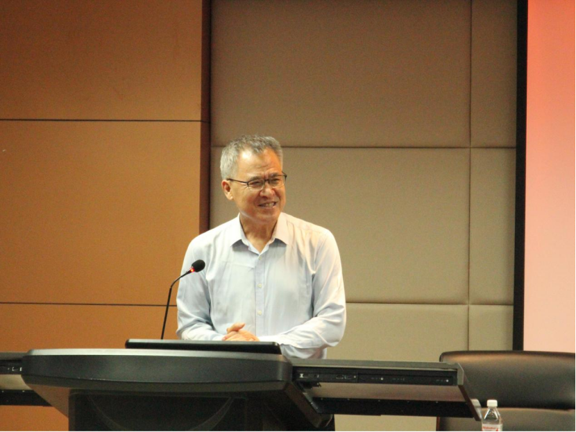 讲座伊始,张树铮教授代表全体师生对罗福腾教授的到来表示热烈欢迎,介绍了罗福腾教授的学术背景、与文学院的渊源关系及此次讲座的主题,并表示对讲座内容的期待之情。罗福腾教授于1978年考入山东大学中文系,毕业后留校任教,曾历任文学院副教授(1992)、教授(1999)。主要研究现代汉语、方言与音韵、社会语言学、语言政策与规划等。其专著《多元和统一:新加坡的语言与社会》(与郭振羽教授合著)荣登香港《亚洲周刊》2022年全球华人十大好书(非虚构类)排行榜等,引起强烈反响。同时,罗福腾教授对再次站在“新杏坛”的讲台表示感谢,表达了回到母校的欣喜之情。