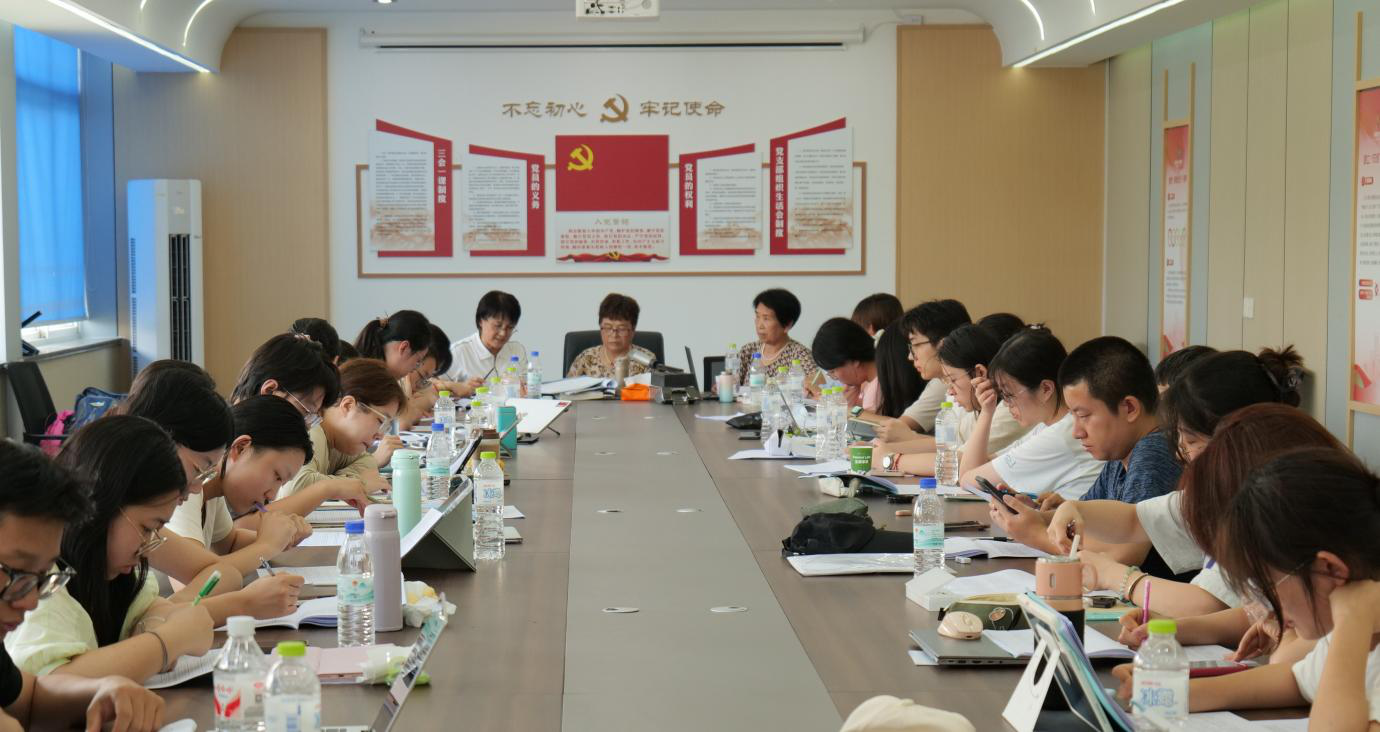7月7、8、9日以及11日的上午,是课程最核心的方言调查部分。团队邀请了来自东村街道南才苑村的两位发音人,围绕海阳方言单字音系、单字记音以及及连读变调、轻声、儿化、“子”缀等方言现象展开了系统调研。调查过程中,师生围坐一堂,仔细聆听方言发音特点并使用音标符号加以记录。在调查过程中,当地的声调系统比较复杂,部分音节的声调调值仅存在细微的差异,团队成员反复听辨、多次确认,力争准确标注。每日调查结束后,团队同学在老师指导下及时整理数据,归纳音系特征与变调规则,逐步构建起海阳方言的语音系统框架。同时,同学们还在音系调查中深入了解了规范的方言调查程序,夯实了汉语方言学的听辨音技巧,提高了田野调查的实践能力。