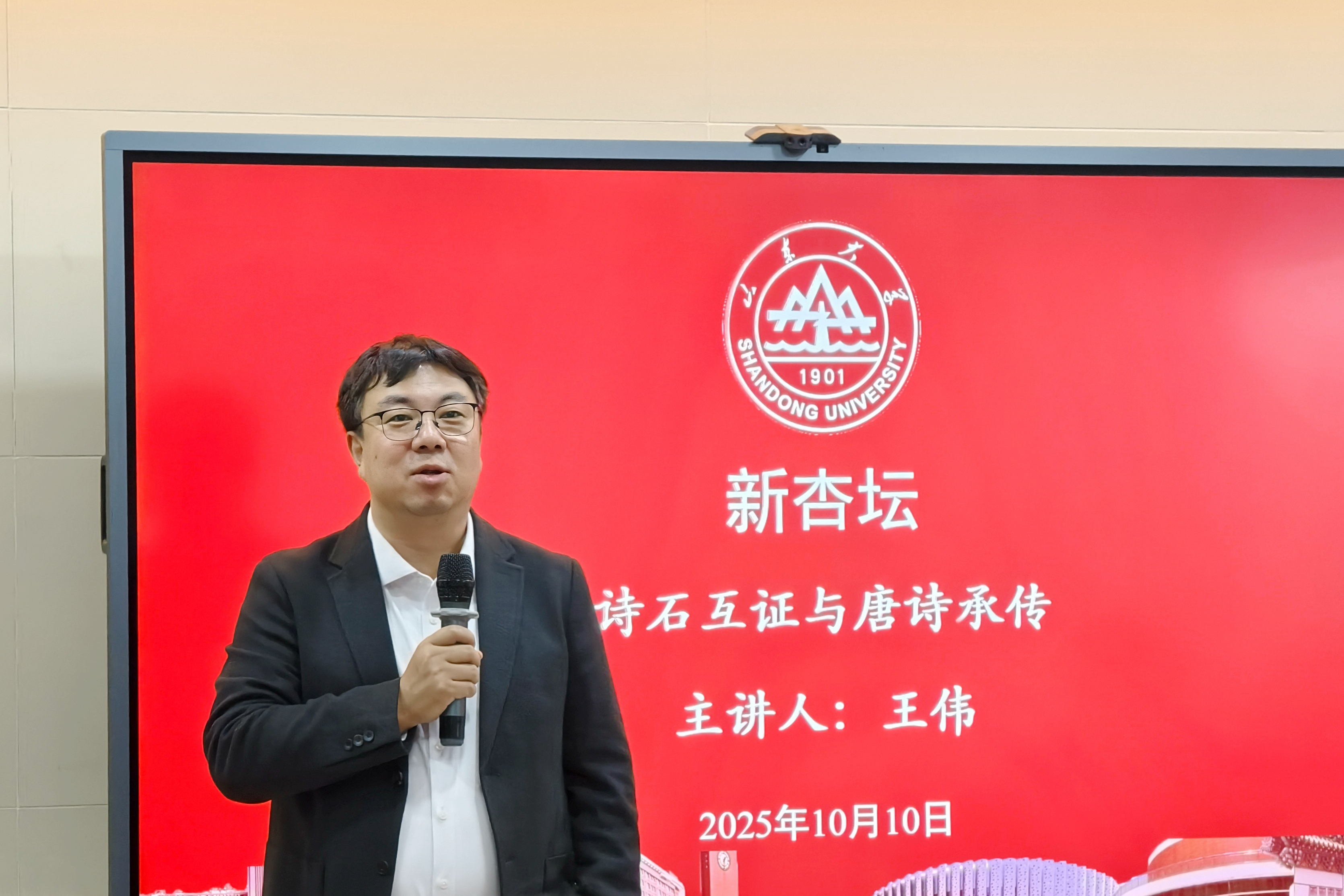 10月10日15时30分,陕西师范大学文学院王伟教授做客第419期“新杏坛”,在知新楼A606室作题为“诗石互证与唐诗承传”的学术讲座。讲座由杨建刚教授主持,尹林研究员出席,吸引了数十名师生参与。