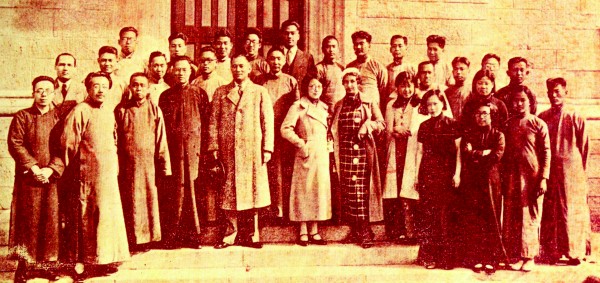 照片:上世纪30年代248cc永利集团部分师生合影,后排左四为老舍,二排左五为当时中文系主任张煦,前排左一为中文系教授闻宥。