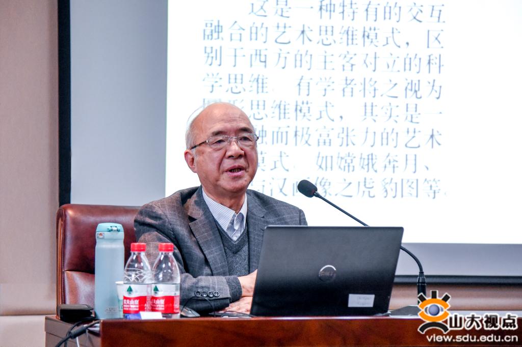 接下来,曾繁仁对中国古代“生生美学”的特点进行了介绍,指出“生生美学”产生于中国传统文化之中。“生生美学”的文化背景、基本内涵、思维模式、艺术特性都具有明显区别于西方美学的中国风格与中国气派。首先,“天人合一”的文化传统是中国人观察、思考问题的特有立场和视角,这构成了“生生美学”的文化背景;其次,中国美学以生命为根本,阴阳之道是中国古代生命哲学的美学体现,这构筑了“生生美学”的基本内涵;再次,交互融合的“太极图式”为“生生美学”提供了启发,发展成为“生生美学”深刻的思维模式;最后,曾繁仁还指出,中国传统的线型艺术特征具有对时间、生命的深沉思索,这成为“生生美学”的艺术特性。