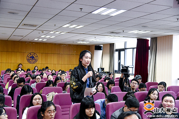在互动环节内,在场听众踊跃发言,曾繁仁对“赋、比、兴与阴阳之道的关系”、“生态美学的生态与科学意义的生态是什么关系”、“生态美学与道家宇宙观的区别与联系”等问题进行了耐心解答,给同学们留下了深刻印象,讲座在热烈的掌声中落下帷幕。