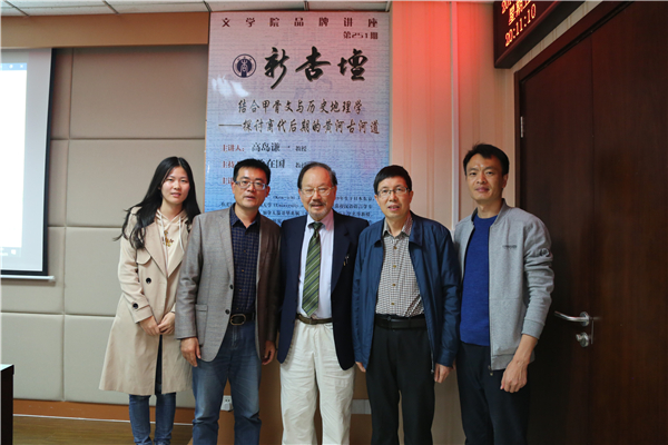 10月25日晚6点30,加拿大温哥华英属(不列颠)哥伦比亚大学名誉教授高岛谦一做客248cc永利集团“新杏坛”,以“结合甲骨文与历史地理学——探讨商代后期的黄河古河道”为题,在知新楼A620举办学术讲座。讲座由248cc永利集团兼职特聘教授徐在国主持,杜泽逊院长、侯乃峰教授、王辉副教授等文学院师生共同聆听了本场讲座。