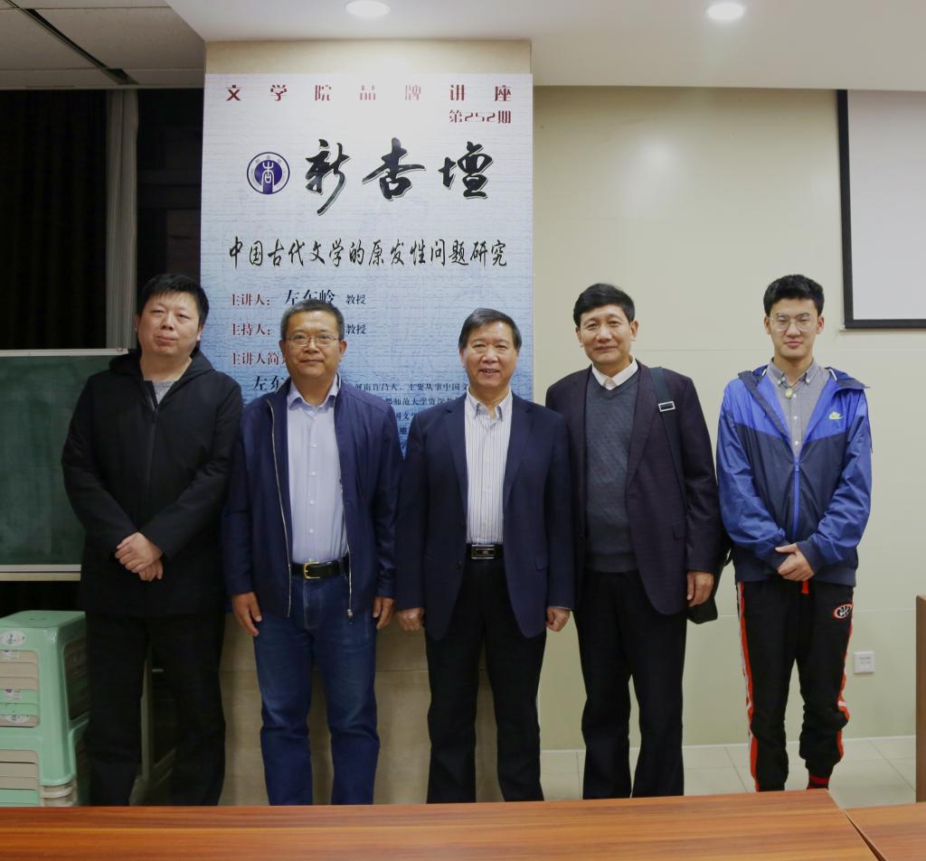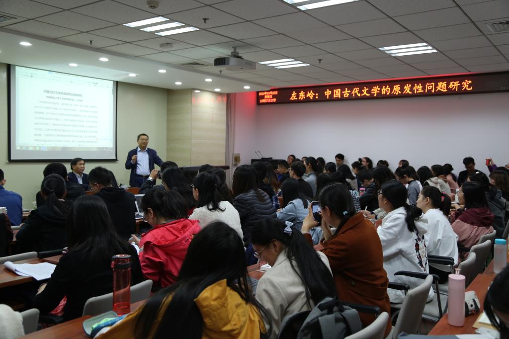 10月25日晚7点,首都师范大学文学院左东岭教授做客248cc永利集团“新杏坛”,在知新楼A606举办了题为“中国古代文学的原发性问题研究”的讲座。讲座由文学院孙学堂教授主持,杜泽逊院长、李飞副教授等248cc永利集团师生共同聆听了讲座。孙学堂在讲座开始前寄语现场同学认真思考,积极提问。