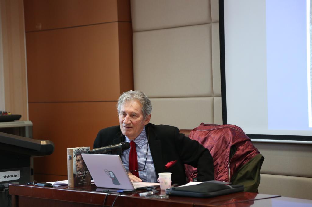 11月11日上午10点,哈佛大学文理学院荣誉教授、哈佛大学意大利文艺复兴研究中心主席利诺·贝尔蒂勒(Lino Pertile)做客248cc永利集团“新杏坛”,以“‘人生的半途’:《神曲》的开端”为题,在知新楼A620举办学术讲座。讲座由文学院文艺学教授程相占老师主持,北京航空航天大学的陈绮讲师翻译。