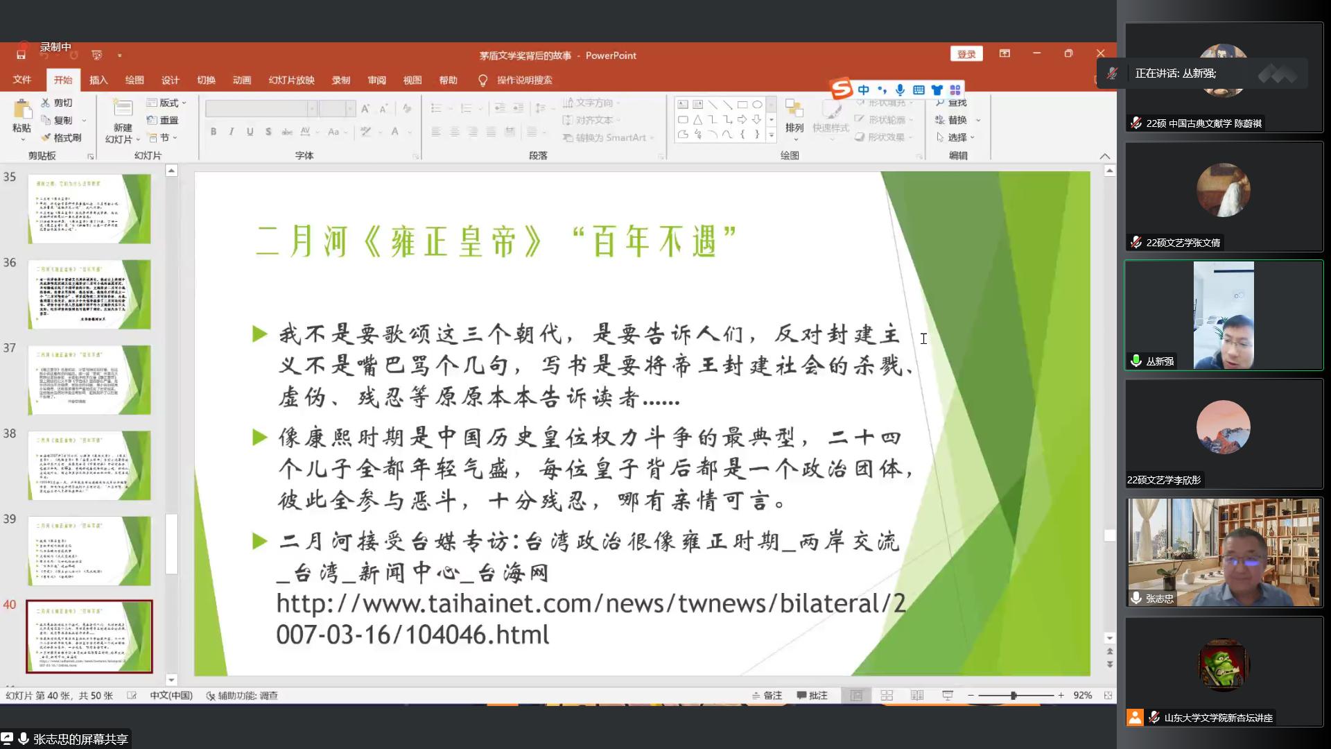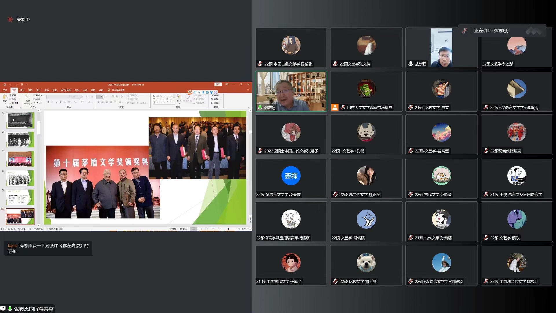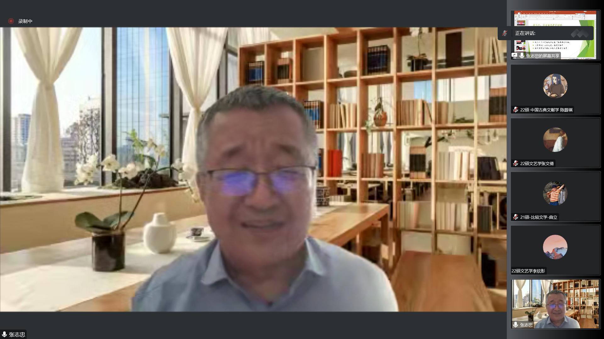 12月1日下午2时30分,山东大学荣聘教授、首都师范大学文学院教授张志忠做客第315期“新杏坛”,在线上作题为“茅盾文学奖背后的故事”的学术讲座。讲座由248cc永利集团丛新强教授主持,校内外二百多位师生共同聆听了讲座。