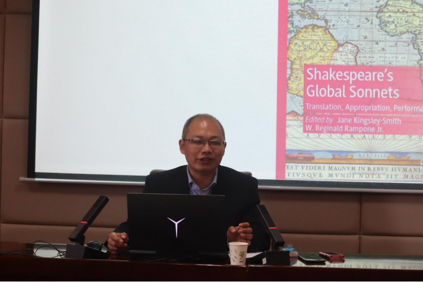 首先,郝田虎教授从“为什么是十四行诗”这一问题切入讲座。他指出,十四行诗这一文学形式在世界范围内影响广泛,但综观国内外学界的莎学研究,“莎士比亚与十四行诗的中国化”这一题目尚未得到足够的重视。事实上,中国诗人对十四行诗的诗体建设做出了独特的贡献,具有极大的研究价值。