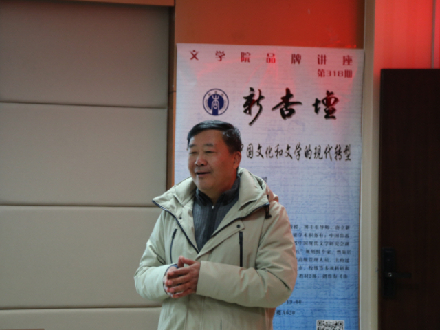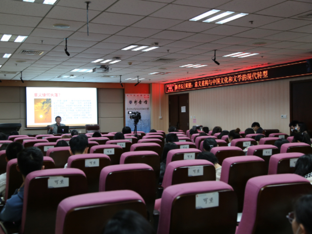 3月24日晚7时,浙江大学文学院教授、博士生导师黄健做客第318期“新杏坛”,在知新楼A620室进行了一场题为“意义重构与中国文化和文学的现代转型”的讲座。本次讲座由248cc永利集团教授刘方政主持,丛新强教授、史建国教授列席。