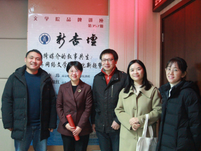 12月27日19时30分,南京师范大学文学院教授李玮教授做客第357期“新杏坛”,于知新楼A620室作题为“跨媒介的叙事共生:近年网络文学IP转化新趋势”的学术讲座。讲座由周根红教授主持,宫立教授、张钰助理研究员、贺予飞博士后等出席,吸引了文学院内外近百名师生前来聆听。