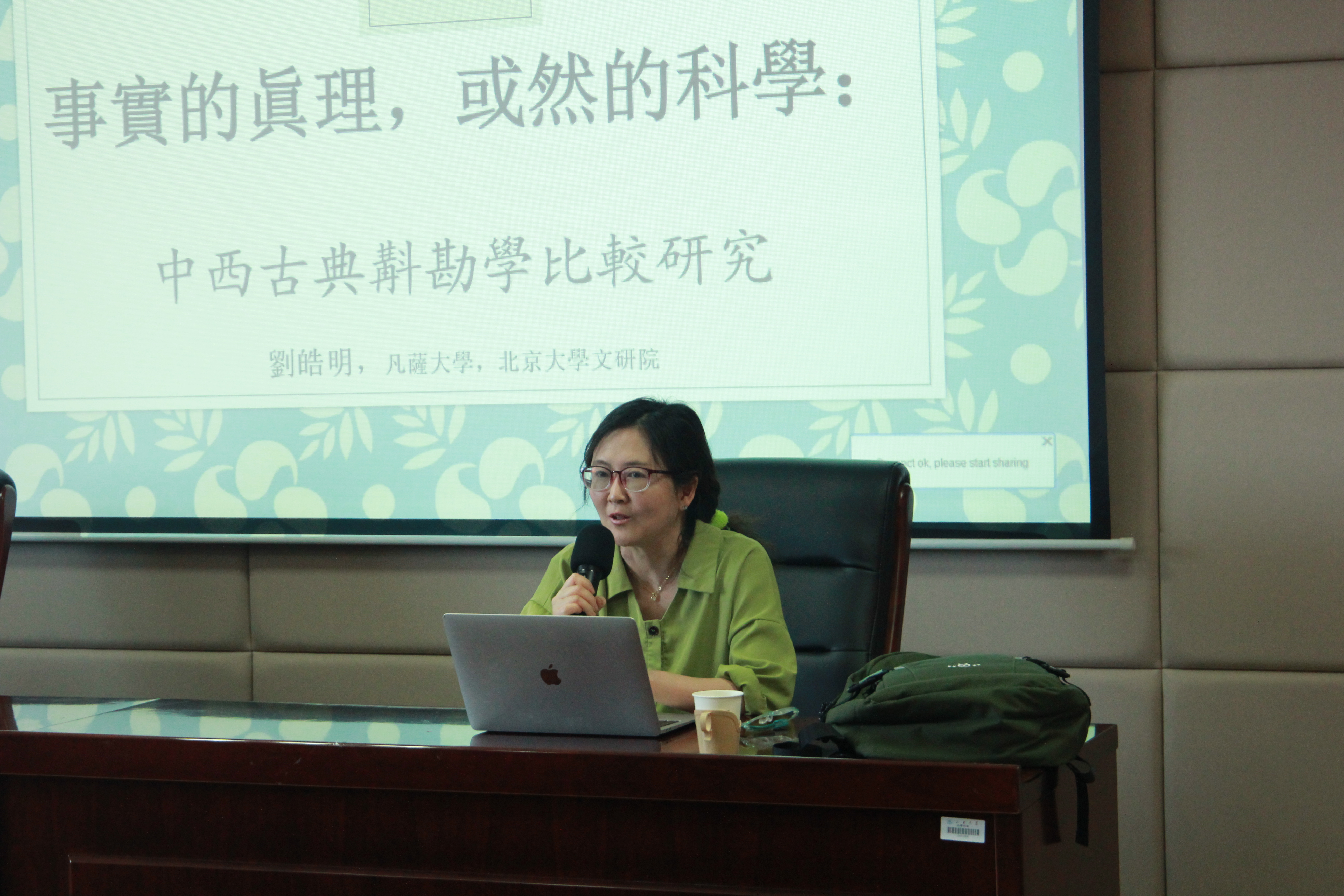 刘晓艺教授总结刘皓明教授的讲座概要并代表师生对其精彩演讲表示感谢。刘晓艺教授指出,刘皓明教授从中西古典校勘学的代表性理论和具体实践出发,系统介绍这门学科在西方与中国的发展历程,其翔实内容使我们受益匪浅,同时这还给我们带来一个非常值得思考的问题,那就是:当今的中国校勘学者能够从西方的语文学传统中借鉴到哪些长处?刘晓艺教授与刘皓明教授就“divination”(校勘者的“神悟”能力)一词进行了简短的讨论,两位学者皆十分推崇校勘者的推理和阐释素养。他们共同认为,在人工智能大行之后、无“divination”的校勘将不复有此前的存在意义。