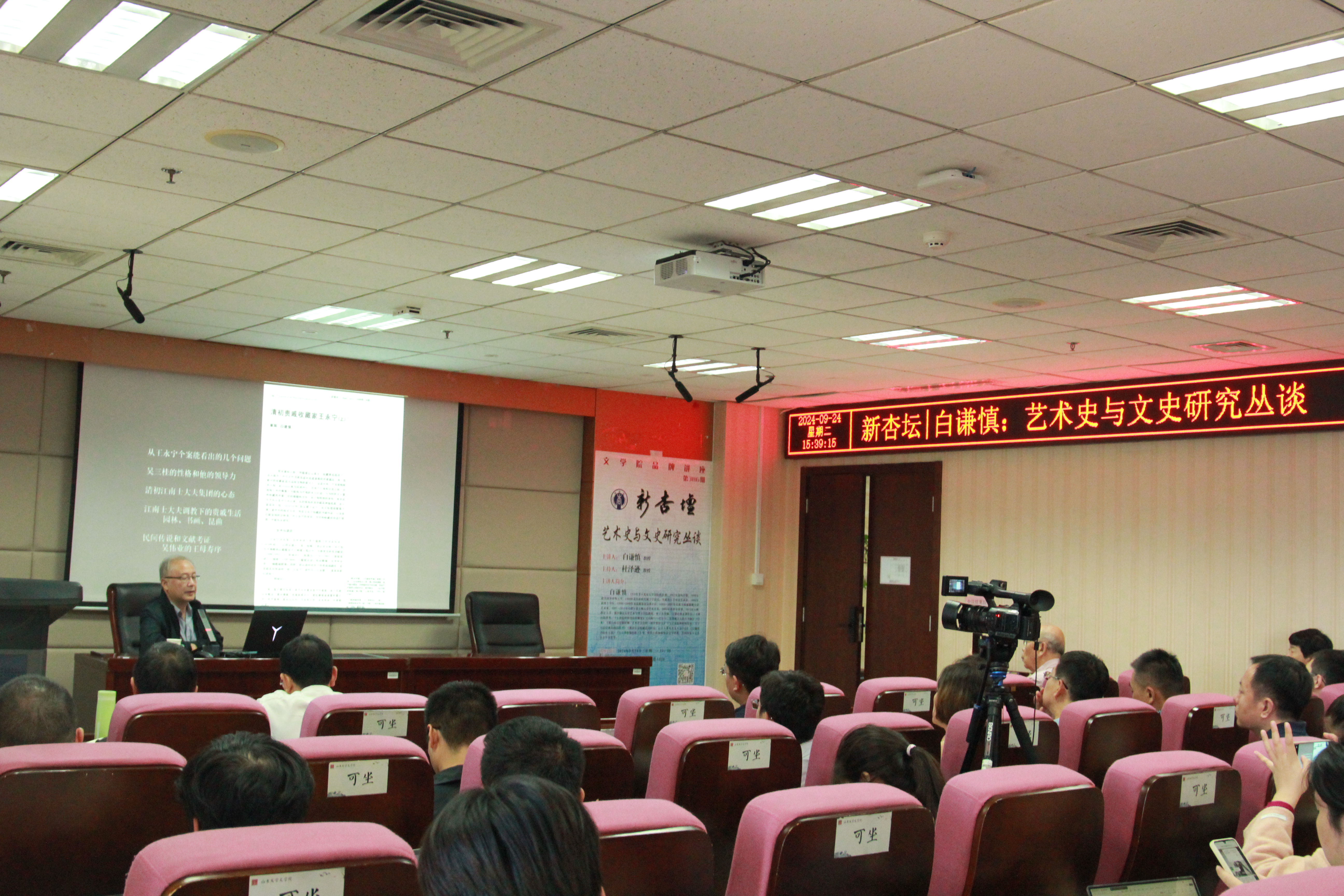 9月24日下午15时30分,浙江大学艺术与考古学院白谦慎教授受邀做客第386期“新杏坛”,在山东大学知新楼A620室为师生们带来了一场精彩的学术讲座,题为“艺术史与文史研究丛谈”。讲座由248cc永利集团杜泽逊教授主持,248cc永利集团徐超教授、刘晓艺教授、陈硕副教授,儒学高等研究院叶杨曦副教授、孙齐副教授,济南市博物馆刘新智副书记、山东师范大学齐鲁文化研究院杨子墨老师等出席了此次讲座,吸引校内外百余名师生前来聆听。