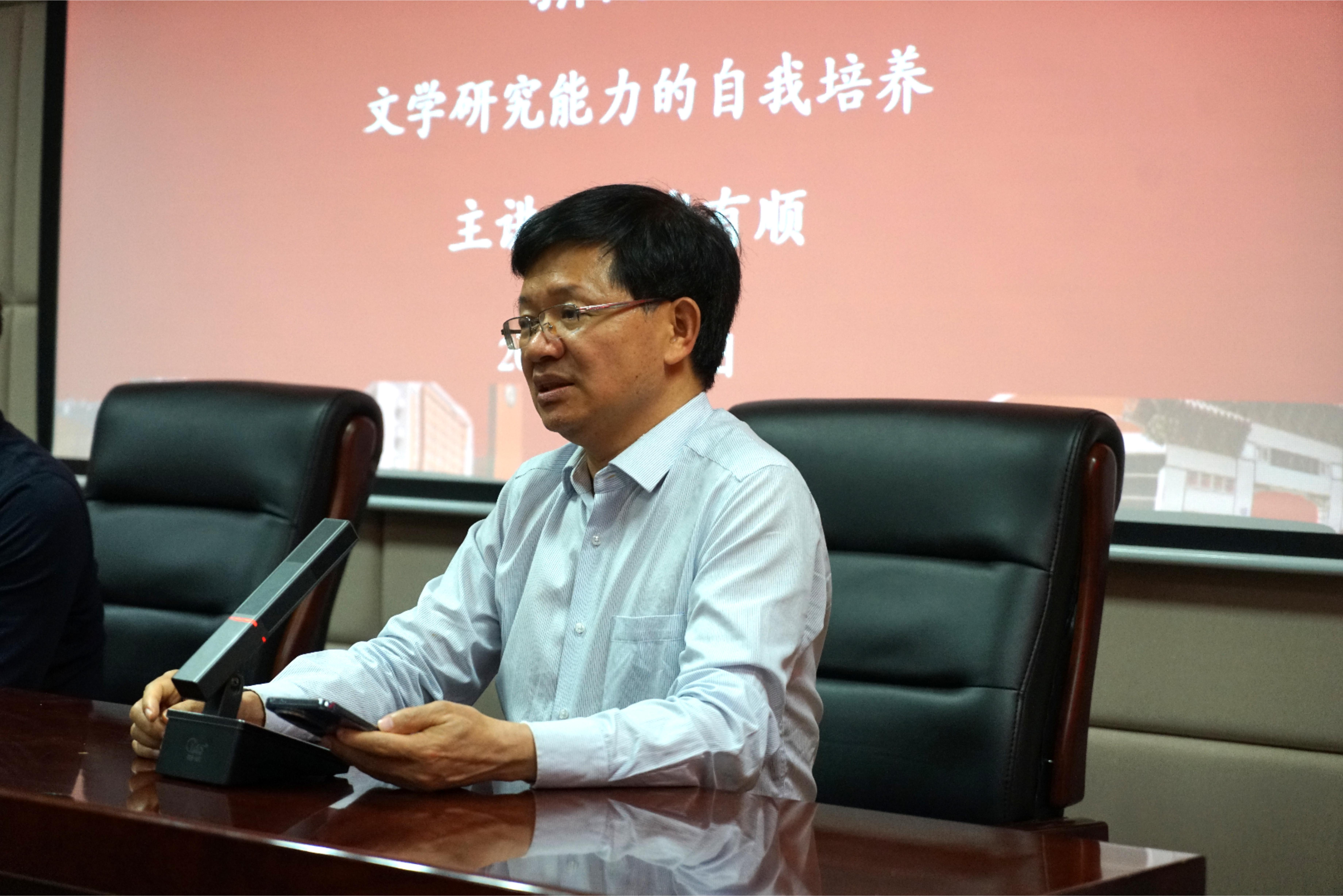 5月30日晚,中山大学谢有顺教授做客248cc永利集团第414期“新杏坛”,于山东大学知新楼A620室作题为“文学研究能力的自我培养”的学术讲座。讲座由248cc永利集团院长黄发有教授主持,丛新强教授、宫立教授、邵部副教授出席,吸引了数十名师生到场聆听。