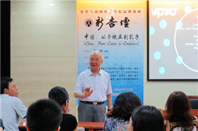 讲座伊始,曾繁仁对朱影的到来表示欢迎,简单介绍了朱教授在电影电视研究和纪录片拍摄领域的成就,并表达了对讲座的期待,希望大家认真观看纪录片,踊跃讨论。