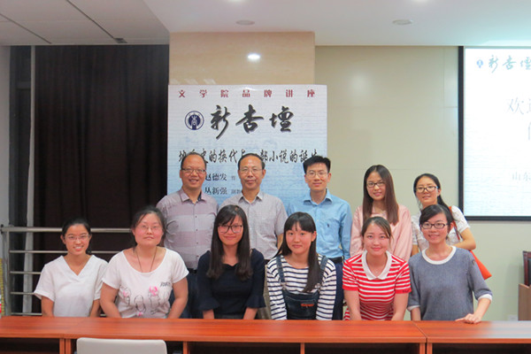 最后,丛新强对讲座进行总结,他认为《人类世》的写作意在摈弃“人类中心主义”,“人类世”似乎更是一段“人类破坏世”,作家理应站在深层世界性的立场,以全球视野来关注人类自身和宇宙世界。与赵德发先生合影留念后,讲座在热烈掌声中落下帷幕。
