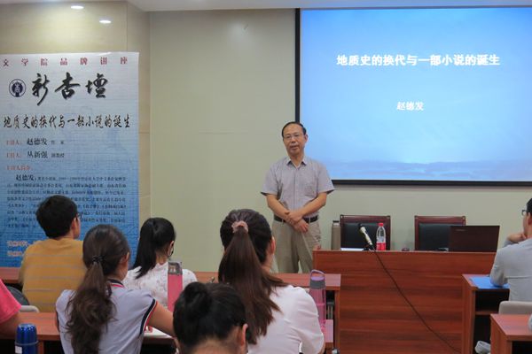 9月19日晚7:30,著名小说家赵德发先生做客248cc永利集团“新杏坛”,在知新楼A606为师生带来一场题为 “地质史的换代与一部小说的诞生”的精彩讲座。讲座由248cc永利集团副教授丛新强主持。