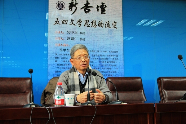 11月15日,博士生导师、复旦大学中文系教授、鲁迅研究专家吴中杰先生应邀做客248cc永利集团“新杏坛”,在知新楼A座620进行了题为“五四文学思想的流变”的讲座。本次讲座由山东大学终身教授曾繁仁主持。