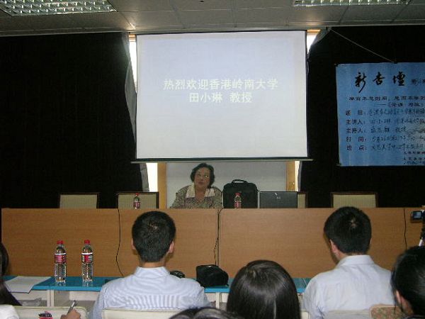 讲座开始,田教授先回顾了她在山大师从殷孟伦、殷焕先、蒋维菘等教授攻读古代汉语专业研究生时期的生活,进而结合自己现在的研究方向及现代社会多元的文化,为大家详细讲述了香港社会多元语言文化现象剖析及语言文字规范化问题。